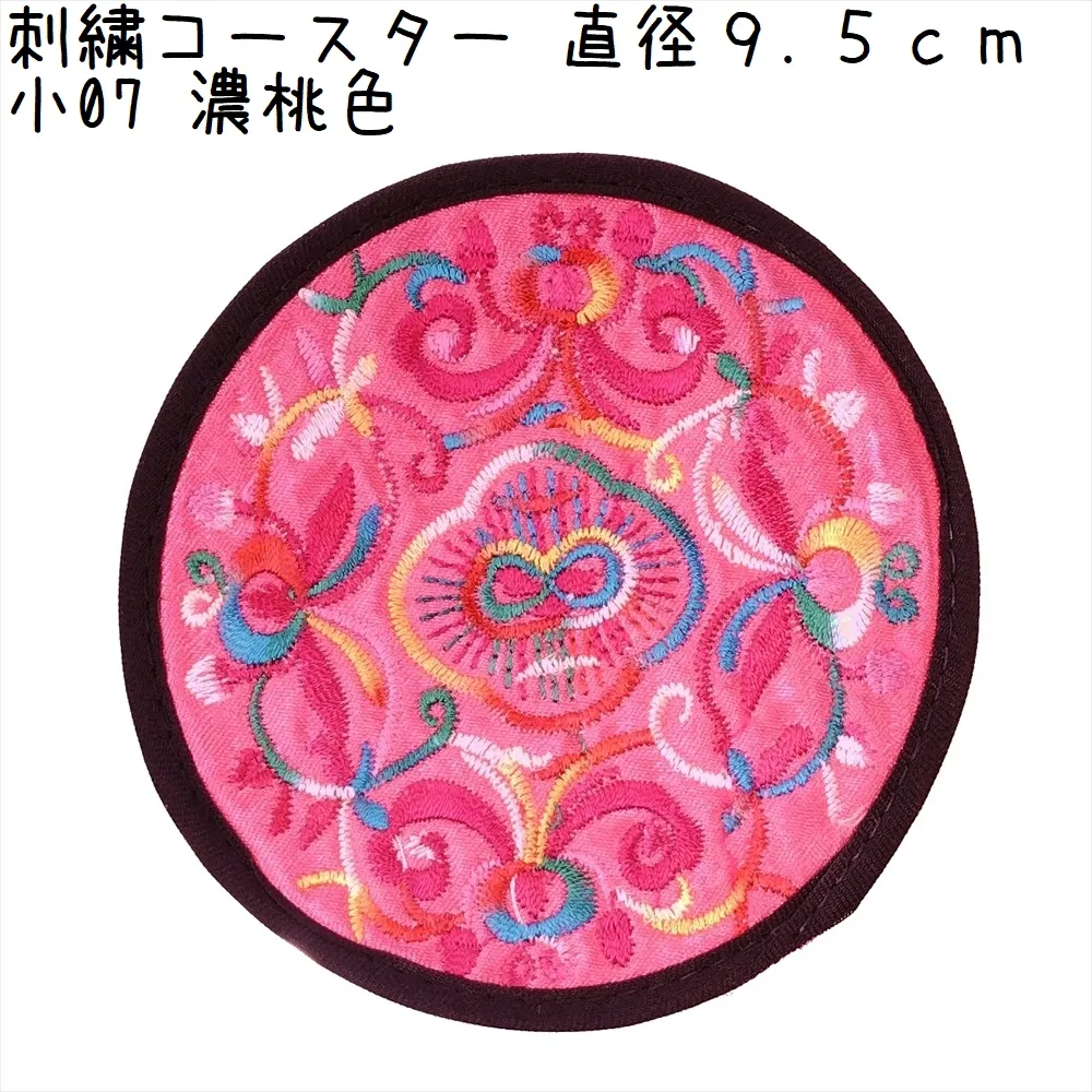 刺繍 コースター 円形 小07 濃桃色 直径9.5cm 1枚 中国 お土産