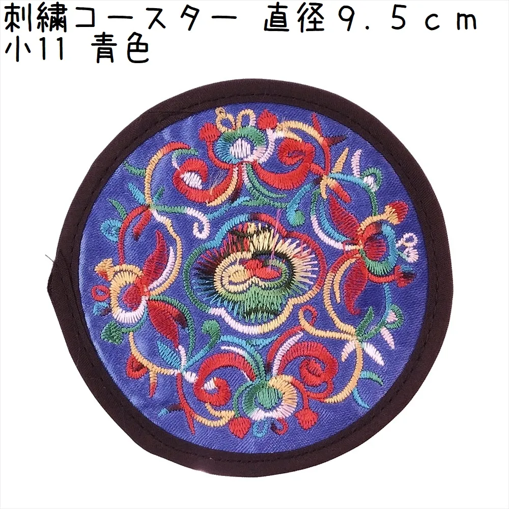 刺繍 コースター 円形 小11 青色 直径9.5cm 1枚 中国 お土産