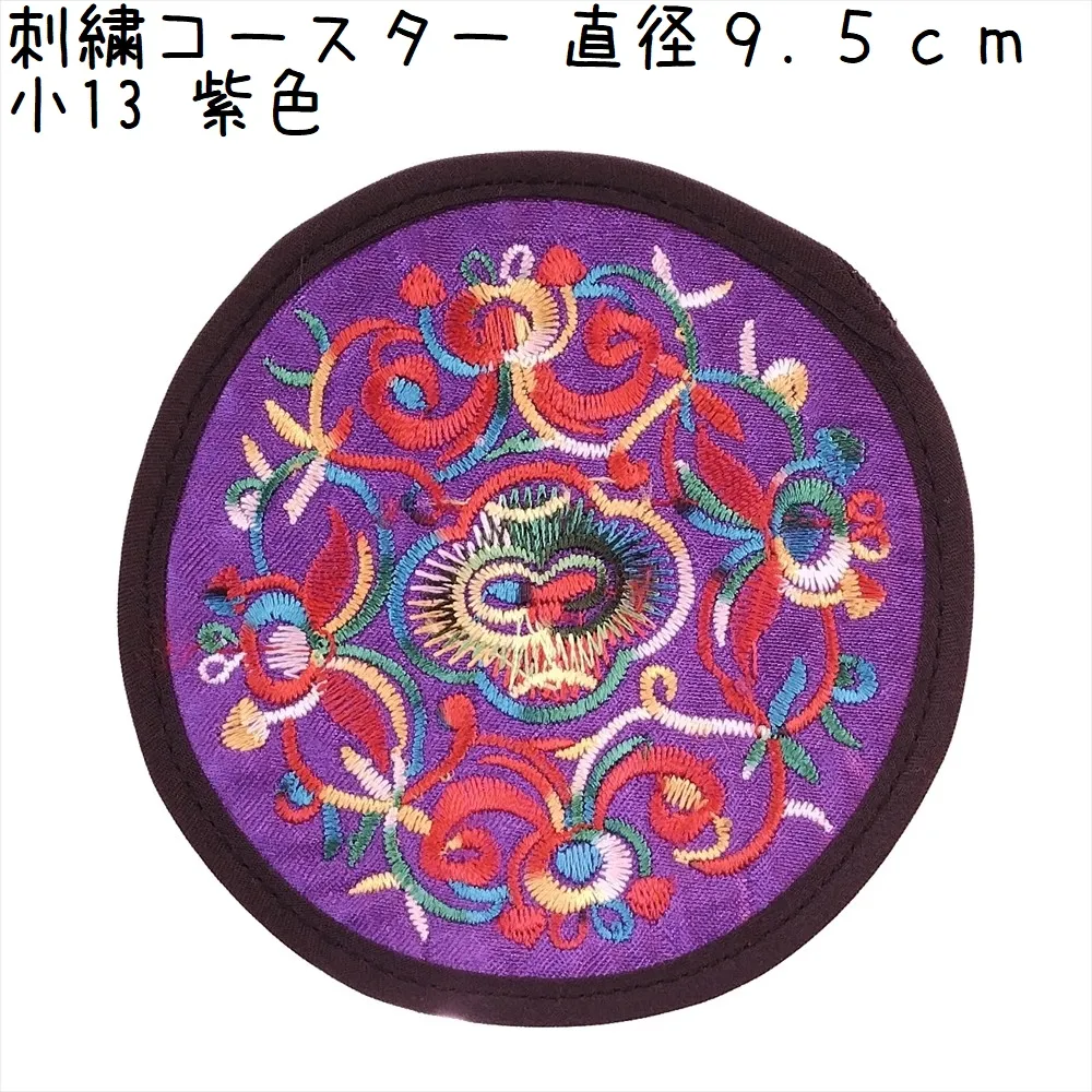刺繍 コースター 円形 小13 紫色 直径9.5cm 1枚 中国 お土産
