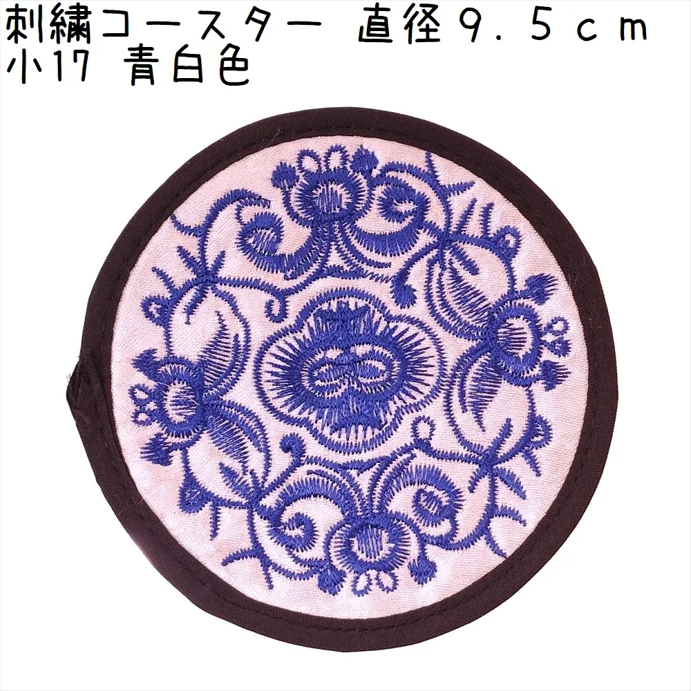 刺繍 コースター 円形 小17 青白色 直径9.5cm 1枚 中国 お土産