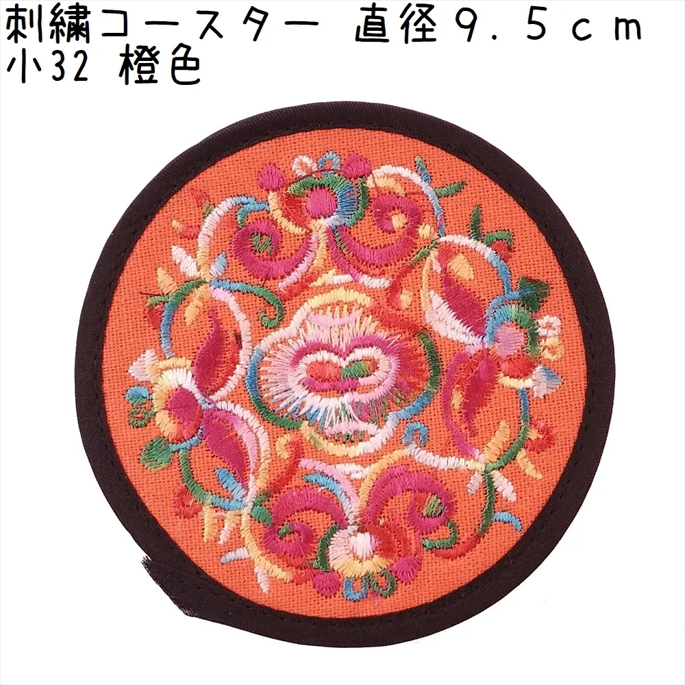 刺繍 コースター 円形 小32 橙色 直径9.5cm 1枚 中国 お土産