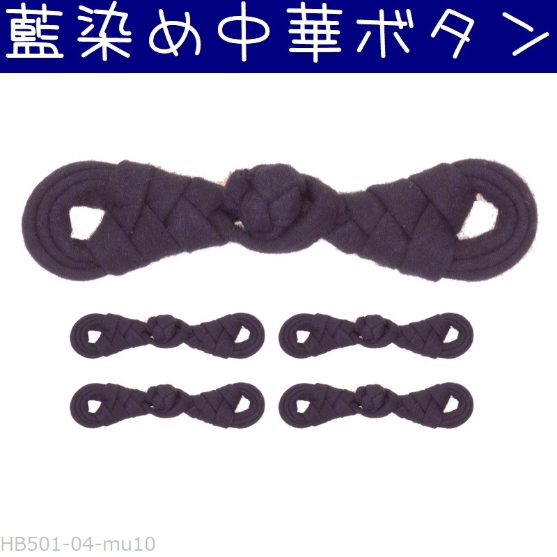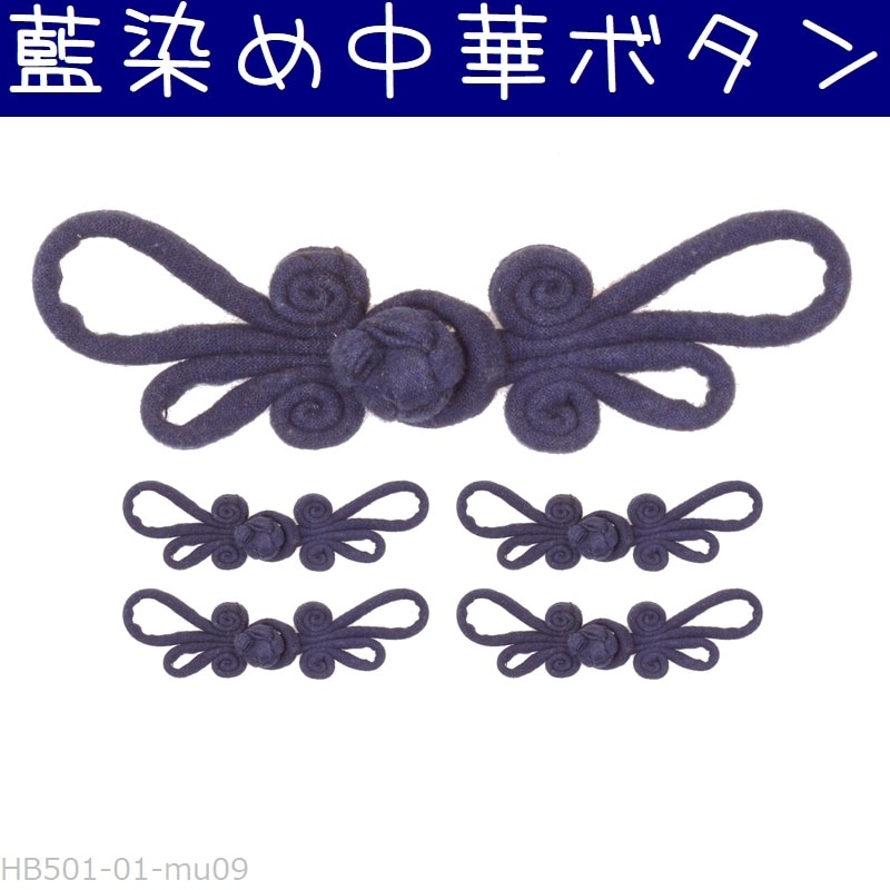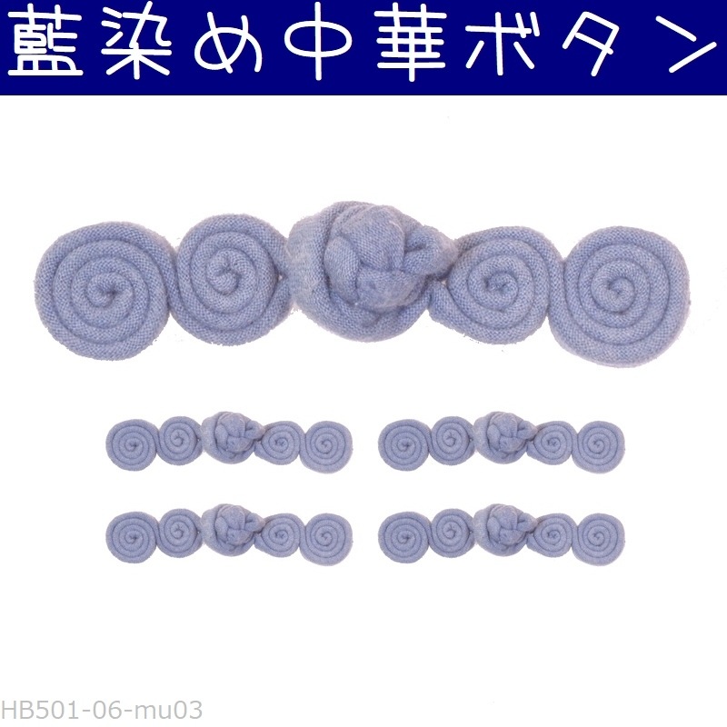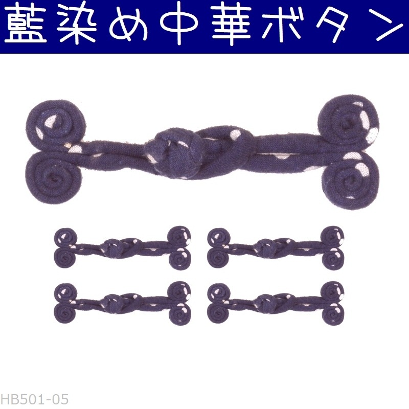 チャイナボタン 藍染め 06瓢箪 無地#3 中華ボタン 釦 5組セット