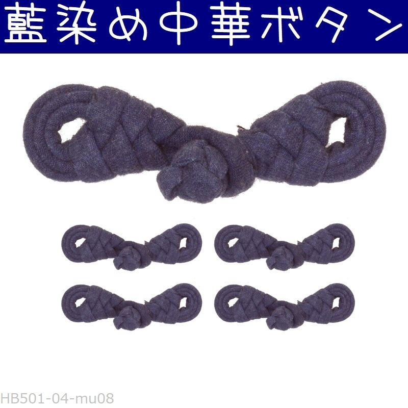 チャイナボタン 藍染め 04琵琶大 無地#8 中華ボタン 釦 5組セット