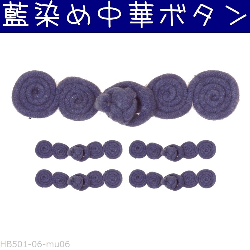 チャイナボタン 藍染め 07シンプル 無地#3 中華ボタン 釦 5組セット