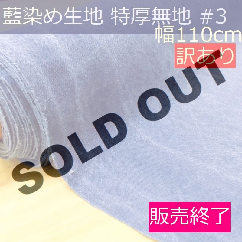 [生産終了]藍染め 無地 生地 幅110cm 特厚#3[訳あり] 藍印花布 1m単位 綿100% ロットNo1506