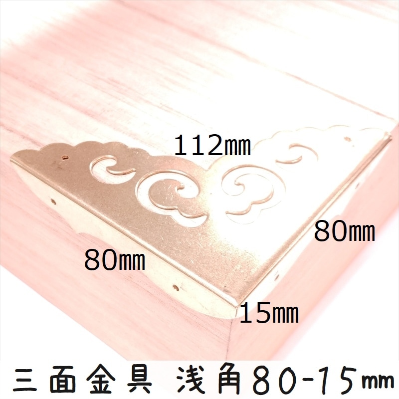 中華装飾金具 三面 浅角飾り 80-15mm-1 金色のみ 1個 銅真鍮製 釘付属