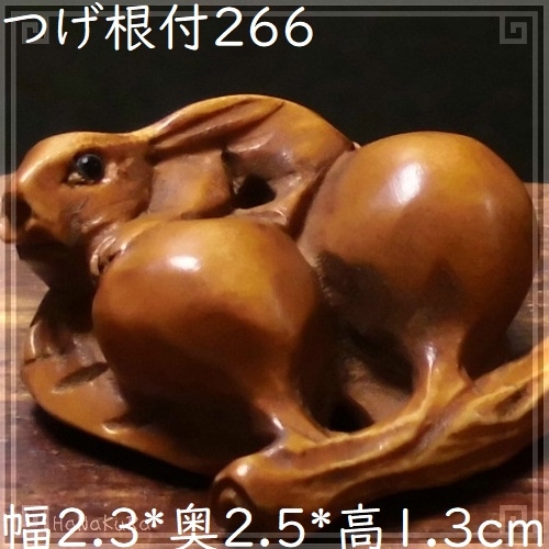 つげ 根付け 木彫り 彫刻 265 葉っぱを食べる兎 ウサギ