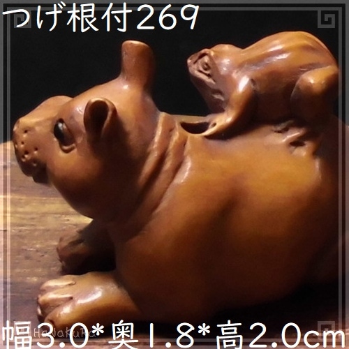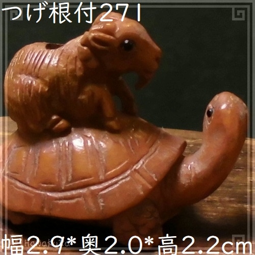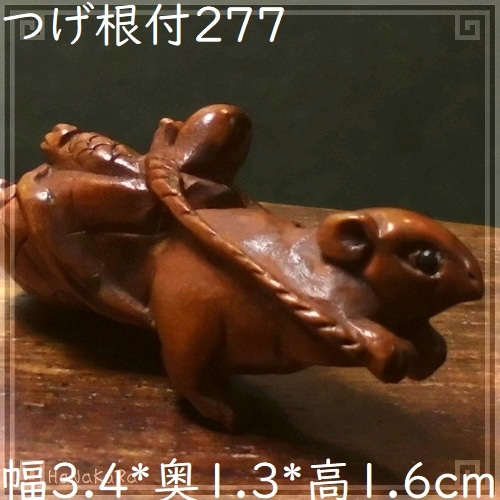 つげ 根付け 木彫り 彫刻 277 亀を曳く鼠 カメ ネズミ