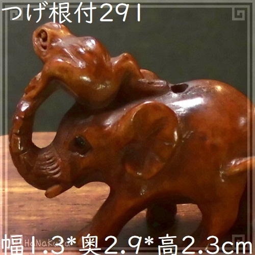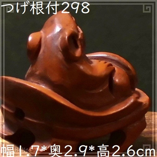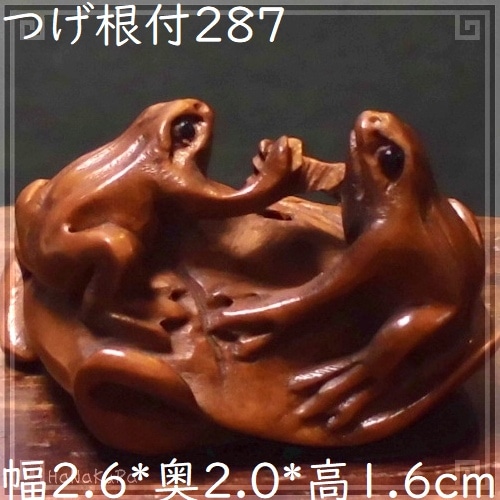 つげ 根付け 木彫り 彫刻 286 蓮に乗る蛙の親子 カエル