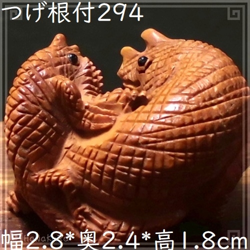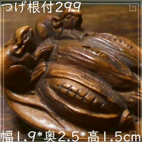 つげ 根付け 木彫り 彫刻 299 トウモロコシと鼠 ネズミ