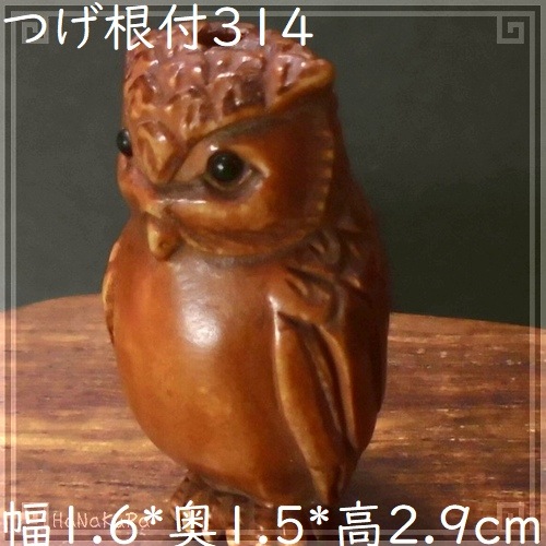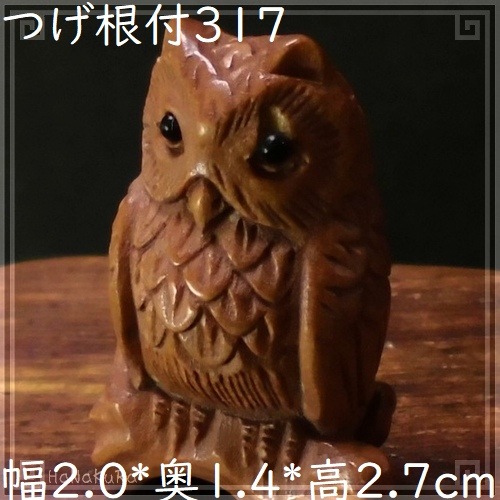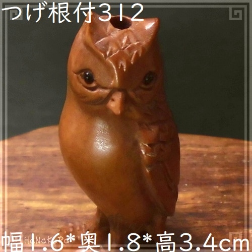つげ 根付け 木彫り 彫刻 317 枝にとまる梟A フクロウ