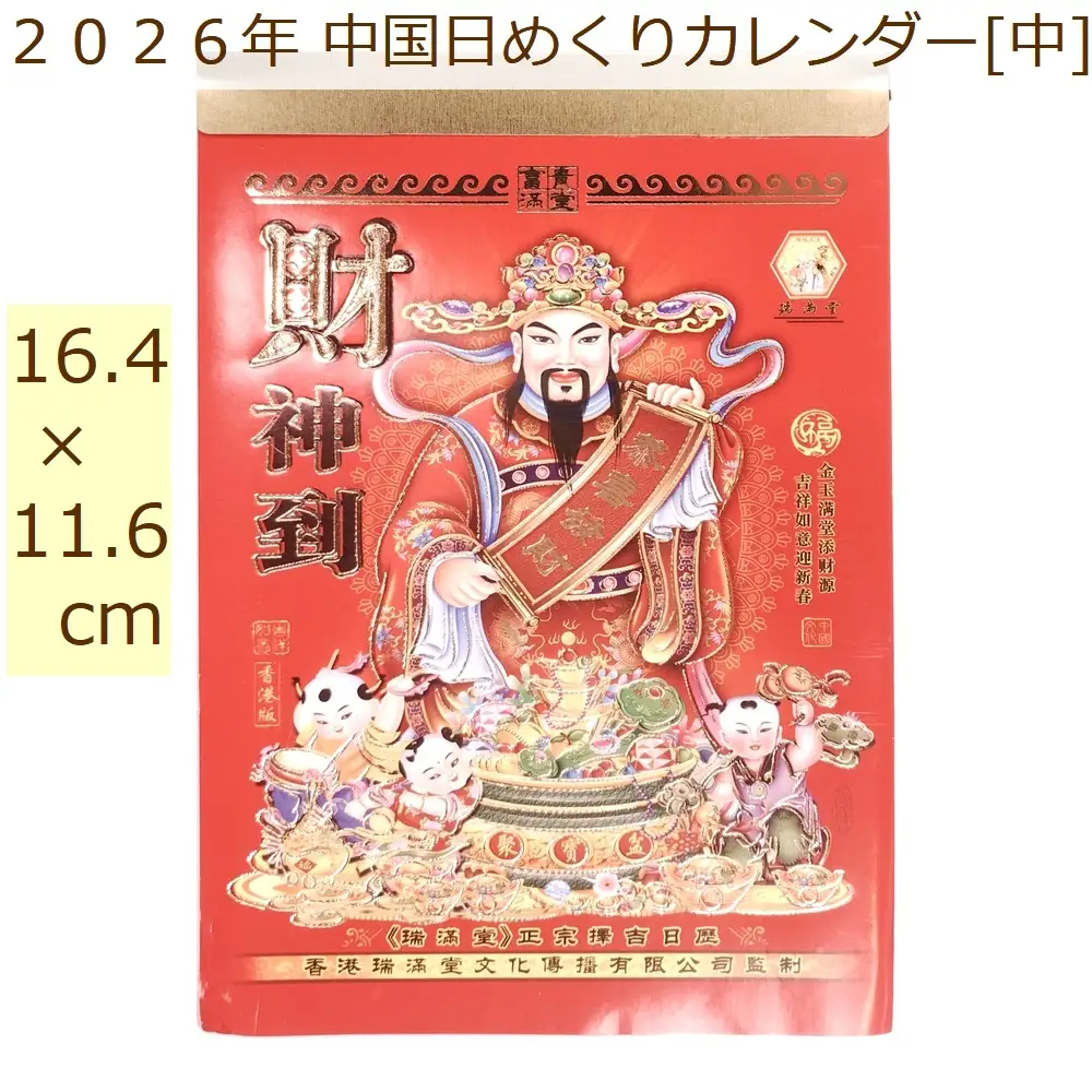 中国 2026年 日めくりカレンダー 日暦 中サイズ 縦16.4×横11.6cm 表紙デザインおまかせ