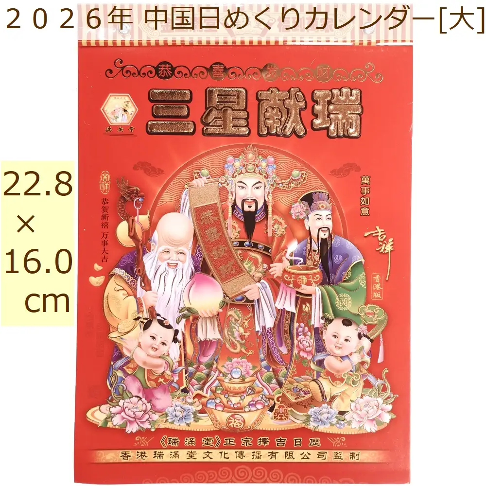中国 2026年 日めくりカレンダー 日暦 大サイズ 縦22.8×横16.0cm 表紙デザインおまかせ