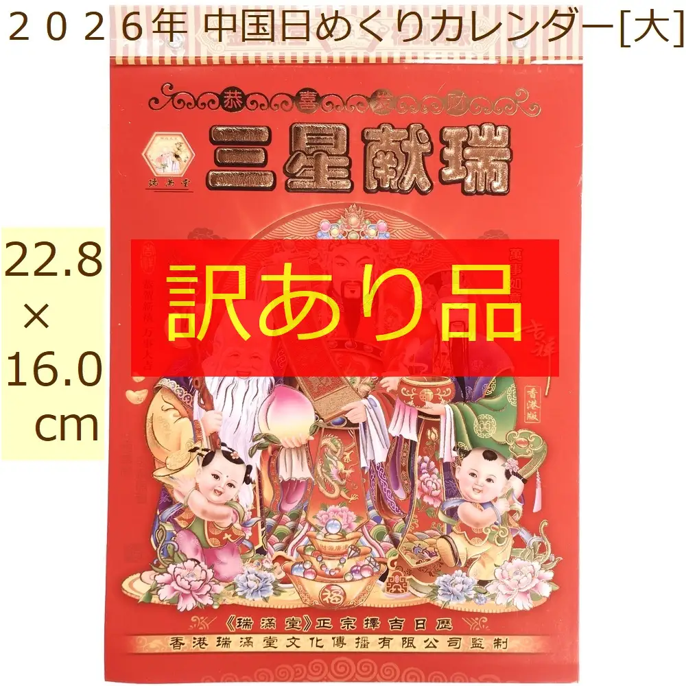 中国 2026年 日めくりカレンダー【訳あり品】 日暦 大サイズ 在庫無し