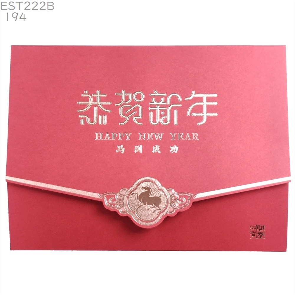 中国 春節 年賀カード 新年 年賀状 大B194[横][午ウマ馬干支柄] 金馬封 恭賀新年 2026年専用 正月 グリーティングカード 賀年片