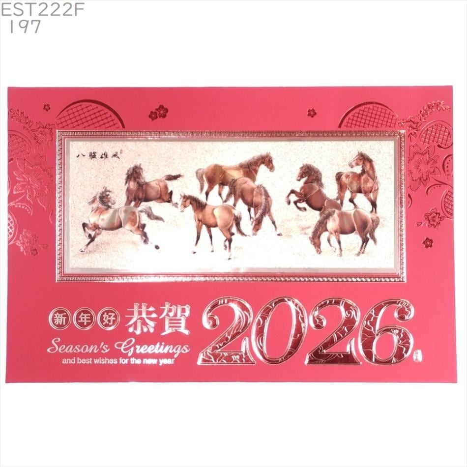 中国 春節 年賀カード 新年 年賀状 大F197[横][午ウマ馬干支柄] 八駿雄風 恭賀2026 カレンダー付き 2026年 正月 グリーティングカード 賀年片