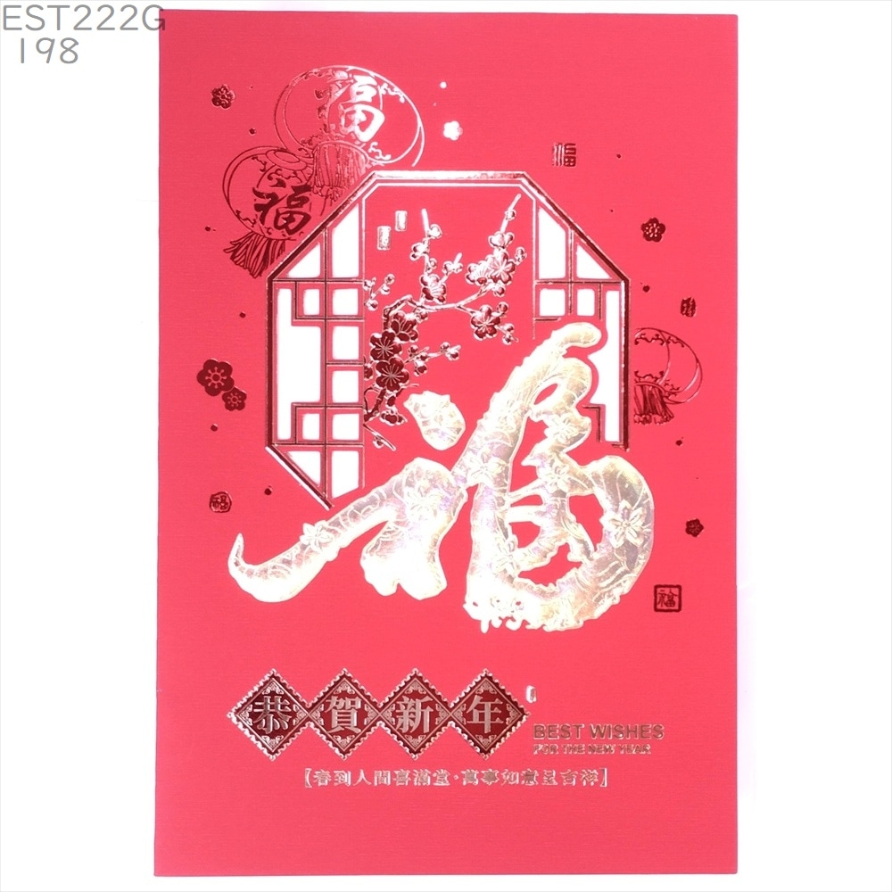 中国 春節 年賀カード 新年 年賀状 大E186[横] 紅窓金福 謹賀新年 2026年 正月 グリーティングカード 賀年片