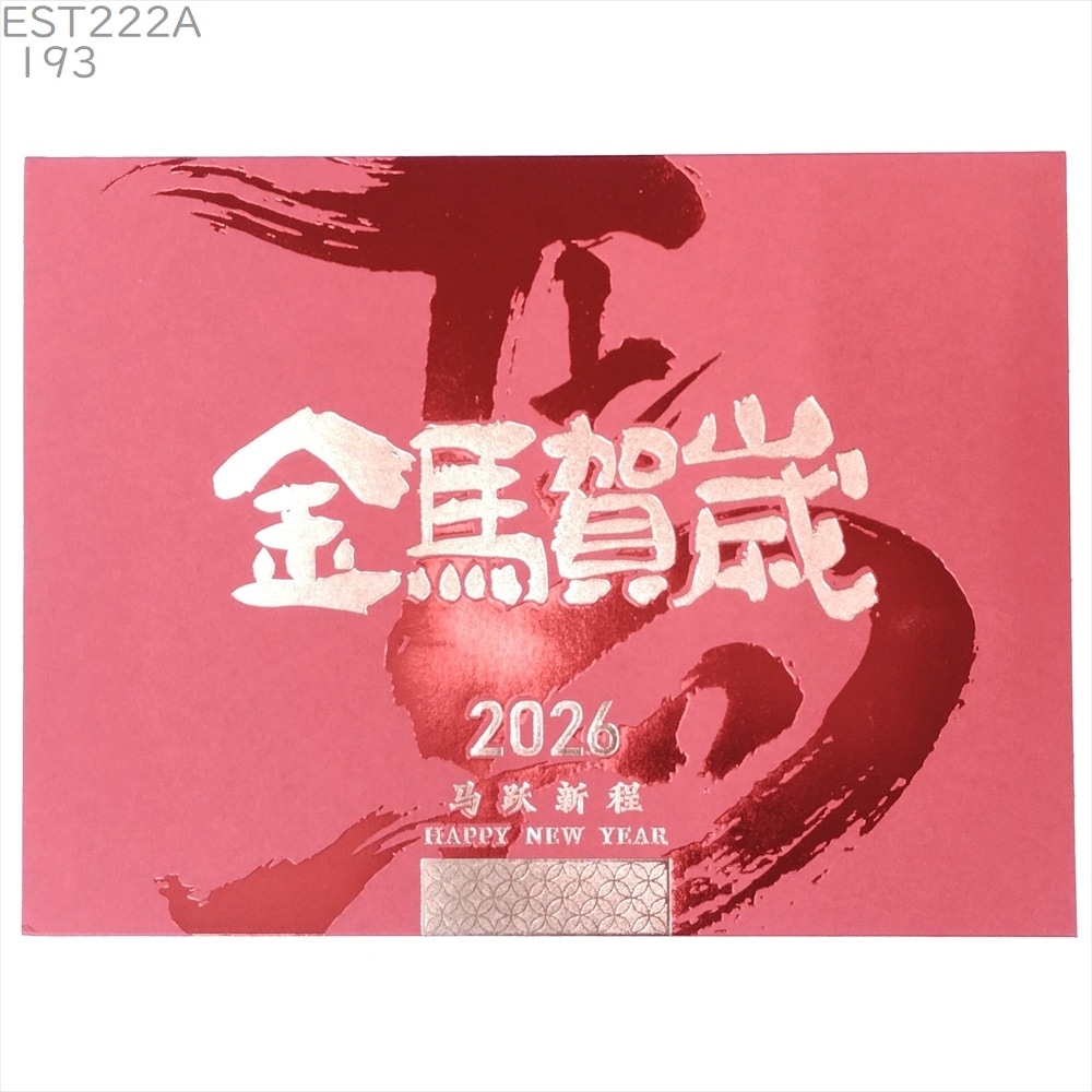 中国 春節 年賀カード 新年 年賀状 大A193[横][午ウマ馬干支柄] 紅馬字 金馬賀歳 2026年専用 正月 グリーティングカード 賀年片