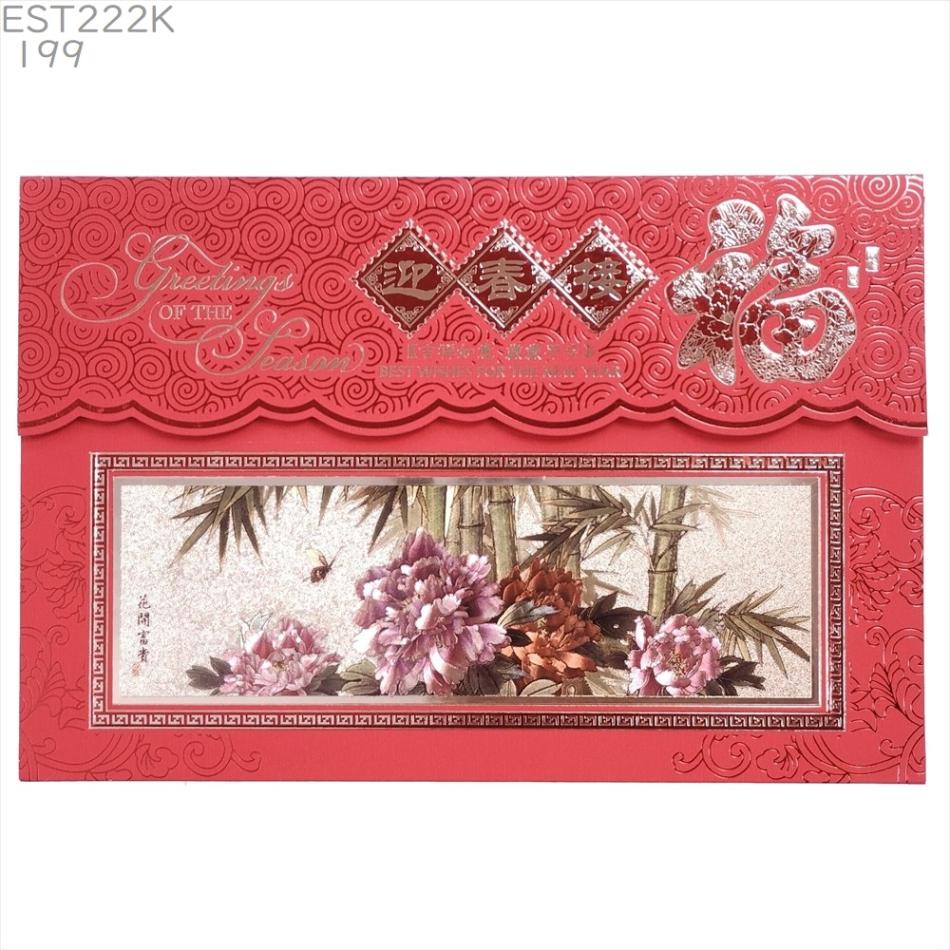中国 春節 年賀カード 新年 年賀状 大H189[横] 花枠封筒 新年快楽 2026年 正月 グリーティングカード 賀年片