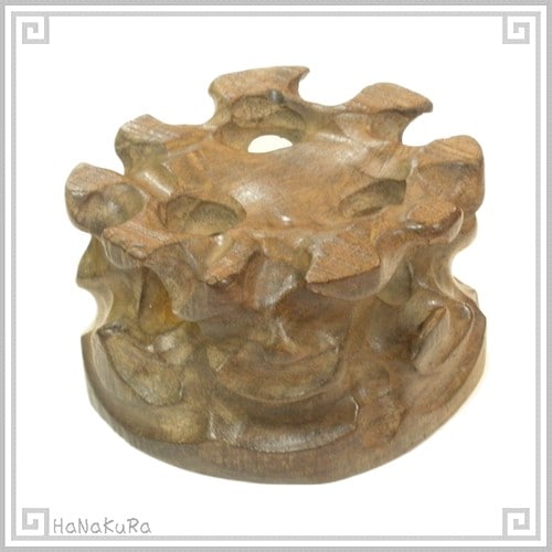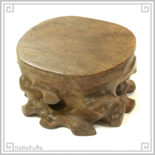 - 1つの木材を円柱状に削りだし、さらに彫刻を施した台座です。