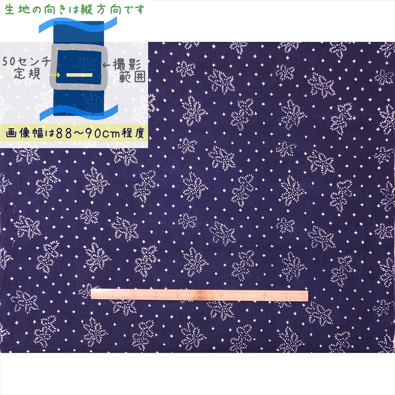 藍染め 生地 幅90cm 藍色55 豆葉 藍印花布 1m単位 綿100% 片面染め ロットNo2209