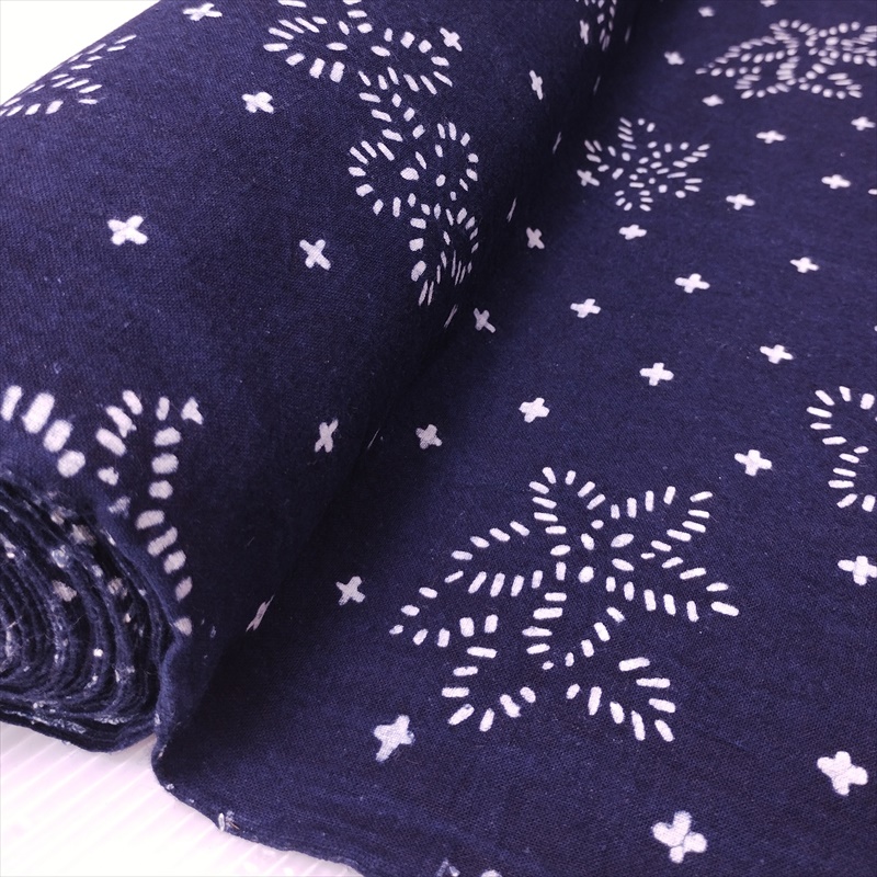 藍染め 生地 幅90cm 藍色51 花雪 藍印花布 1m単位 綿100% 片面染め ロットNo2504