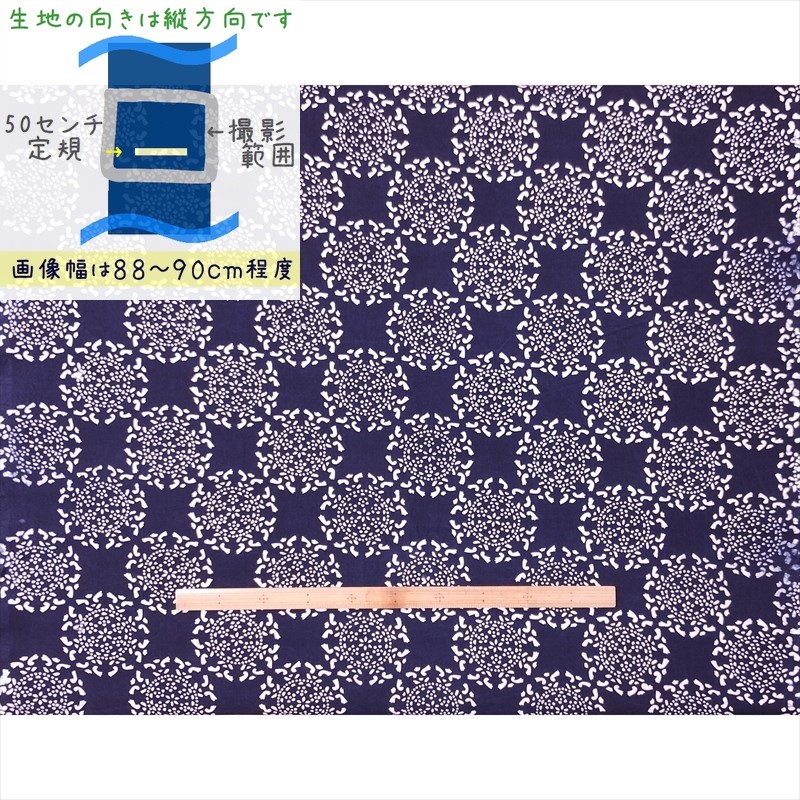 藍染め 生地 幅89cm 藍色58 星花 藍印花布 1m単位 綿100% 片面染め ロットNo2504