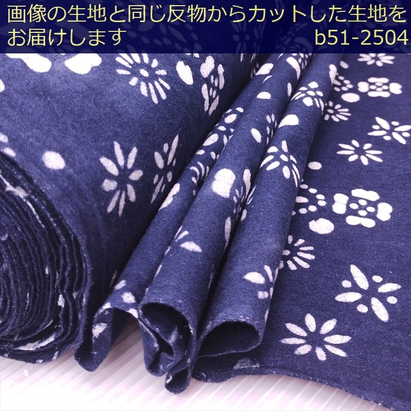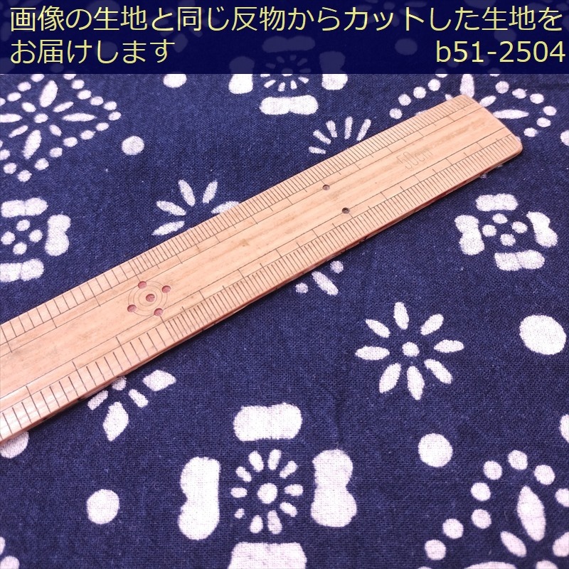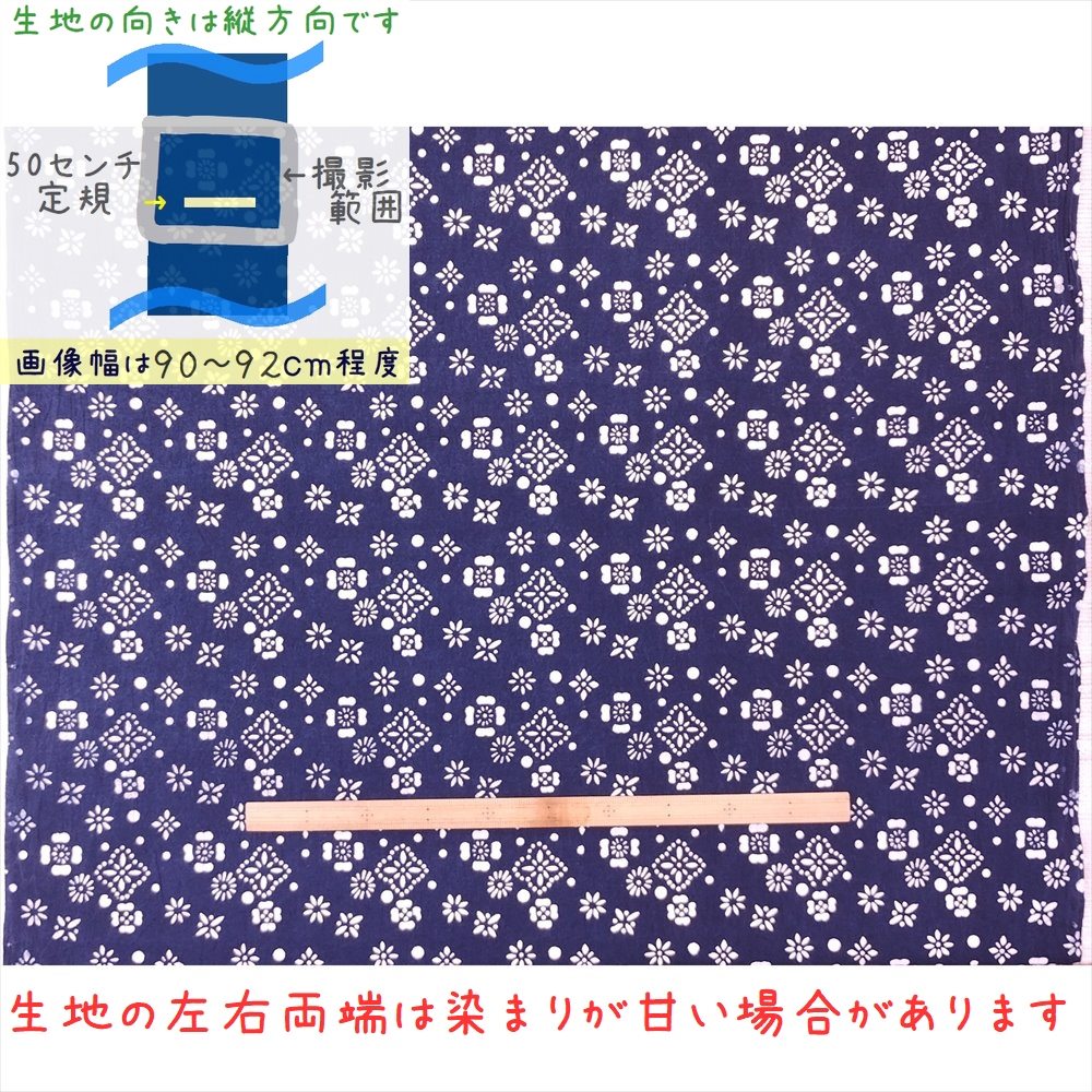 藍染め 生地 幅90cm 藍色50 列花[訳あり] 藍印花布 1m単位 綿100% 片面染め ロットNo2504