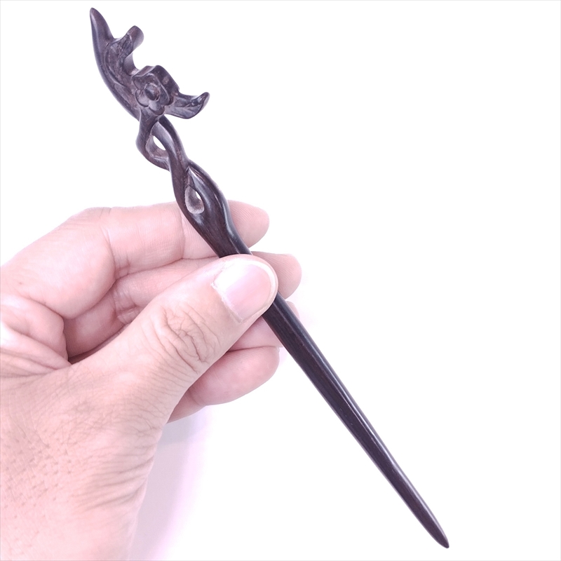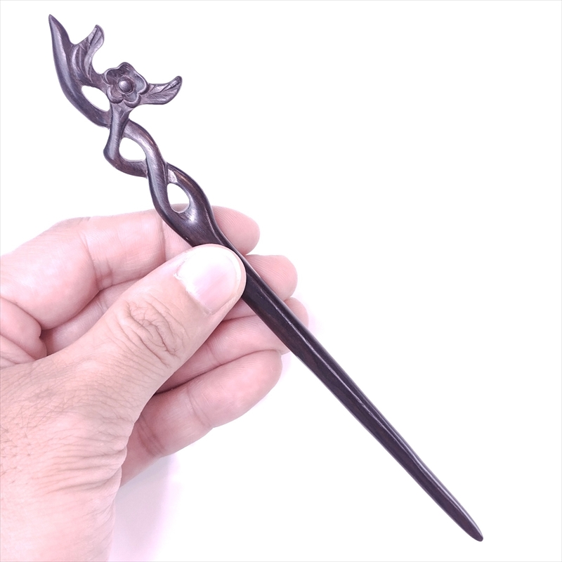 - 黒檀(こくたん)と呼ばれる、硬くて丈夫な黒い天然木を使用した簪(かんざし)です。