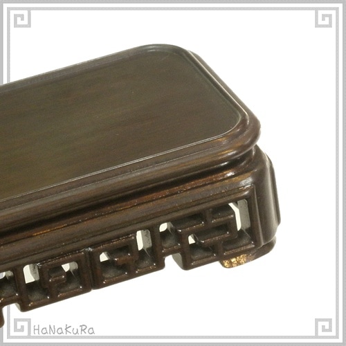 側面には「回紋(雷紋)」と呼ばれる幾何学模様が彫刻されていて、全体的にとても完成度の高い台座です。