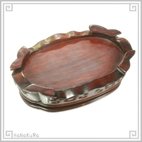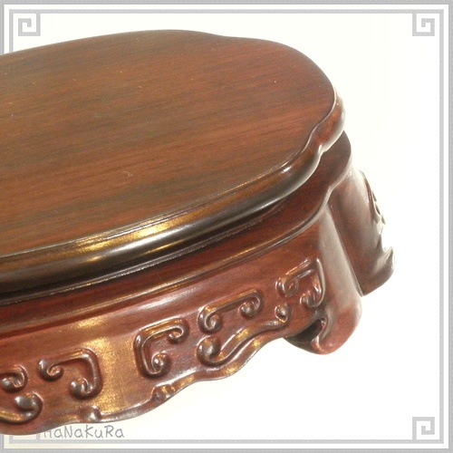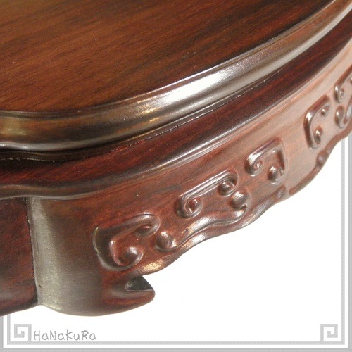 - 1つの木材(紅酸枝という木)から全体を削り出して作った楕円形の台座です。
