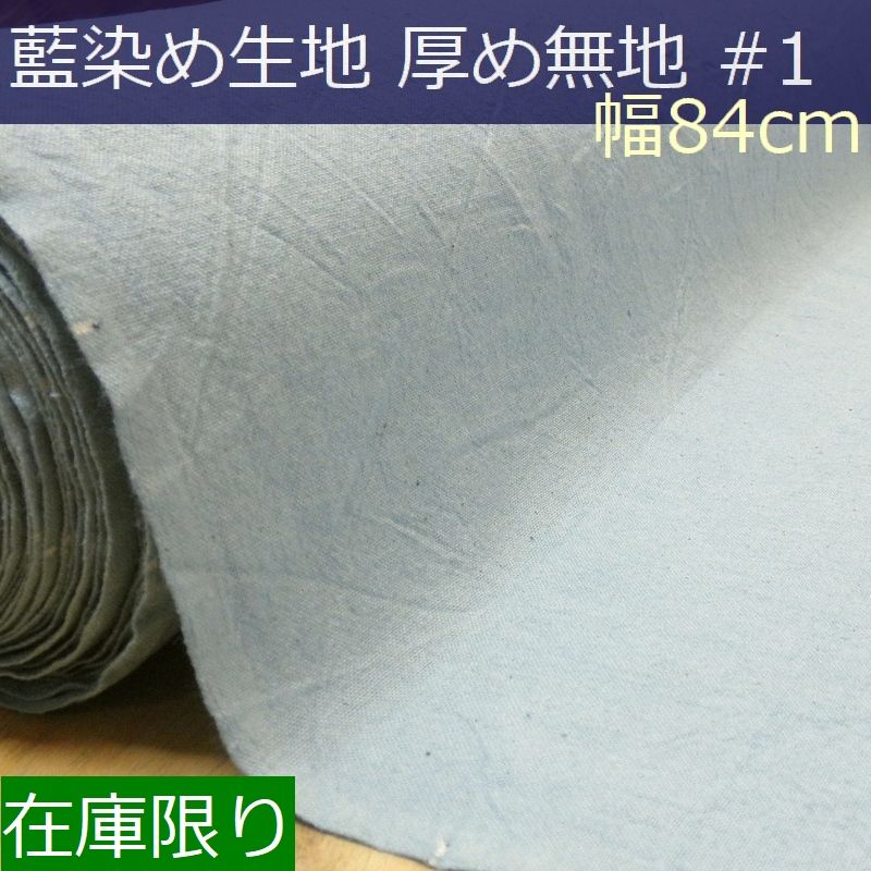 藍染め 無地 生地 幅84cm 厚手#1 藍印花布 1m単位 綿100% ロットNo1801