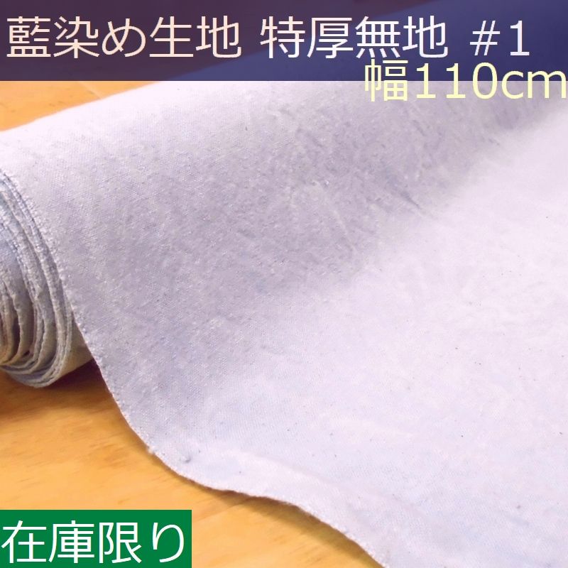 藍染め 無地 生地 幅110cm 特厚#1 藍印花布 1m単位 綿100% ロットNo2006