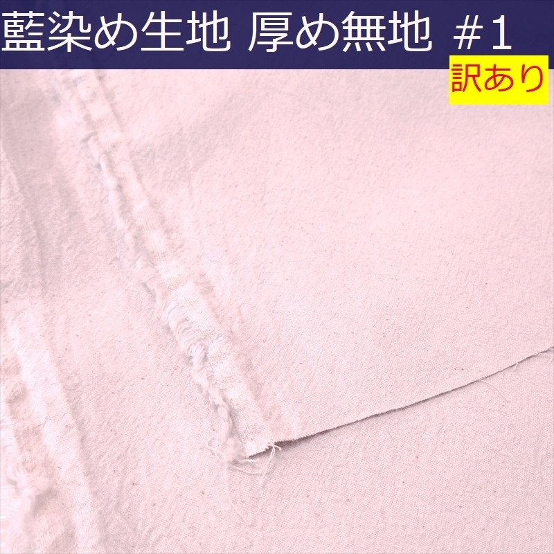 藍染め 無地 生地 幅140cm 厚手#1[#0.5相当、日焼けあり] 藍印花布 1m単位 綿100% ロットNo2207