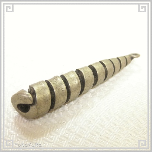 金属線をらせん状に巻いて、ツノガイ(細長い貝)のような形状にしています。