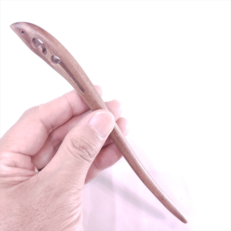 - 「緑檀(りょくたん)」と呼ばれる、硬くて丈夫な木で作った簪(かんざし)です。