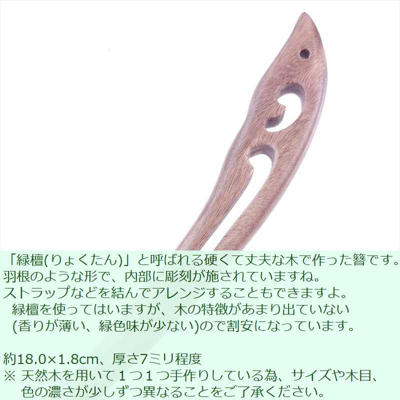 かんざし 簪 木製 緑檀 34B 透羽 普段使い シンプル 天然木 木彫り