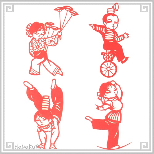 切り絵 剪紙 セットS08 上級品 大道芸 12×8cm 4枚組