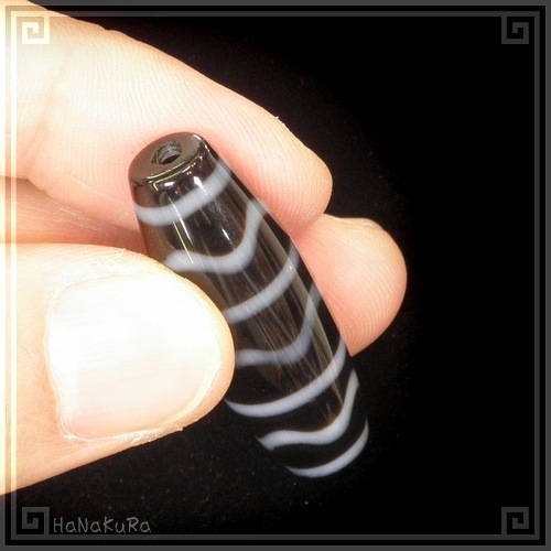 天珠 西蔵 チベット 038-10 水紋天珠 (白透黒)精