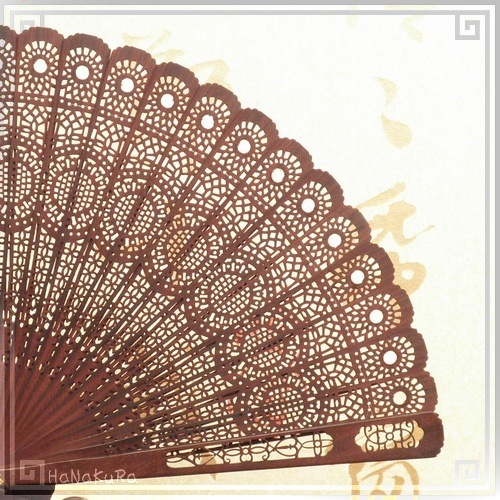 一般に小叶紫檀の方が高級とされていますが、当店で扱っている大叶紫檀扇子は小叶紫檀よりも軽いという特性を活かして、非常に軽くしなやかに仕上げてあります。