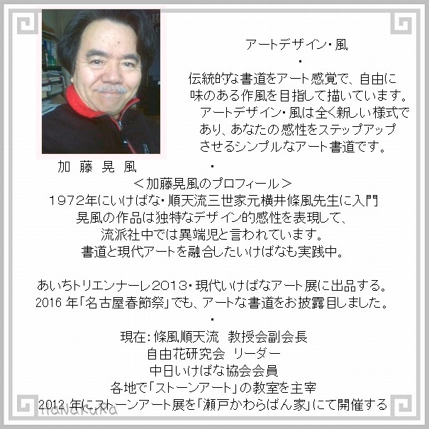 愛知県を中心に活動している書家、加藤晃風さんに書いて頂いた一点物の作品です。