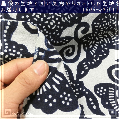 純手工芸印花布 幅82cm白色03「蝶々」 1m単位のカット販売 [ロットNo1605]