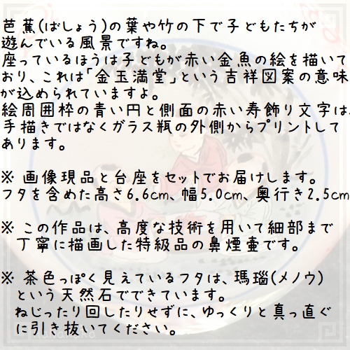 鼻煙壷 特級品 SP02 遊ぶ子供たち 台座付き 鼻煙香 内側から手描き 工芸品 鼻煙壺 内絵 ガラス瓶