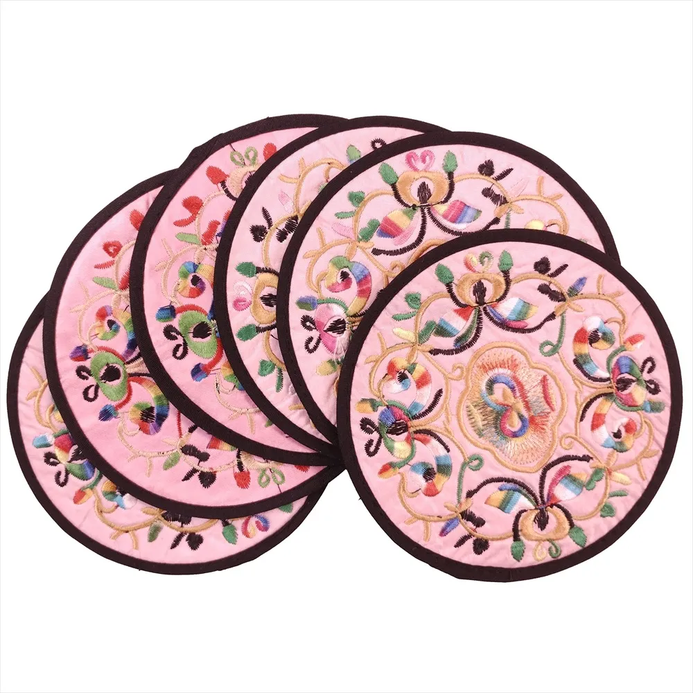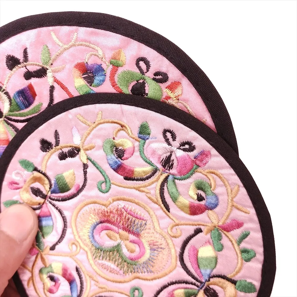 刺繍 コースター 円形 中03 桃色 直径13cm 1枚 中国 お土産