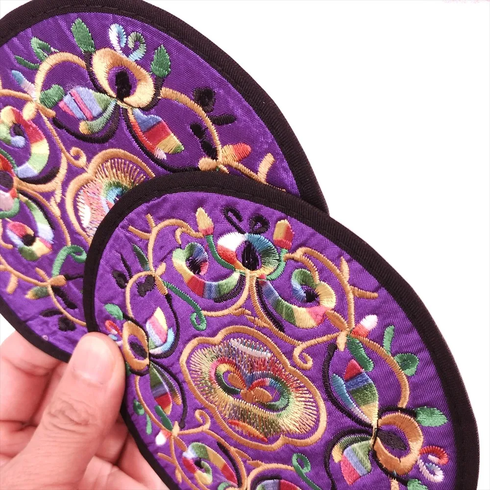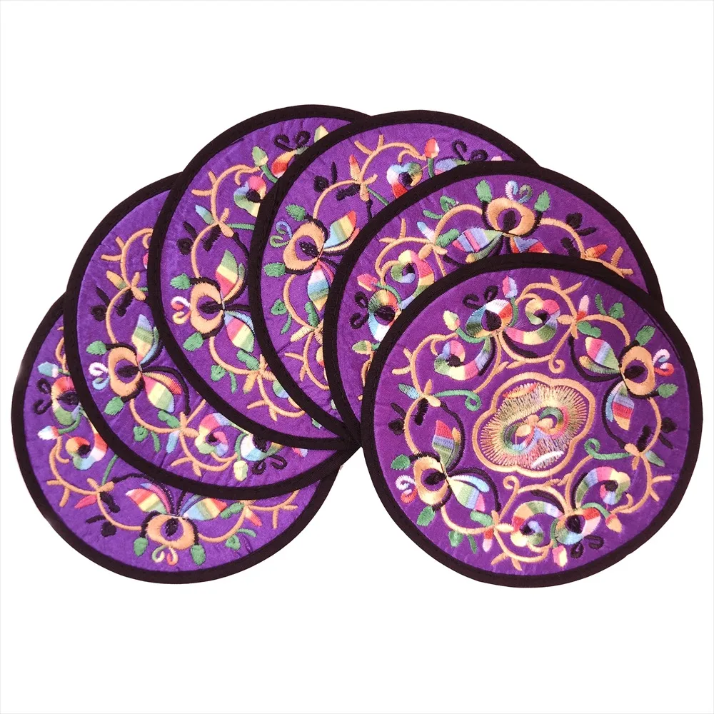 刺繍 コースター 円形 中13 紫色 直径13cm 1枚 中国 お土産
