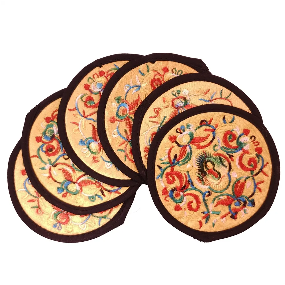 刺繍 コースター 円形 小31 黄色 直径9.5cm 1枚 中国 お土産