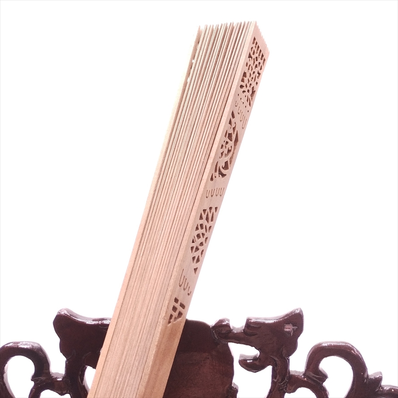 この扇子は、当店の創業時から取引をしている馴染みの蘇州老字号(老舗)で1980-90年代に制作された、良質で希少なインド産白檀を使った白檀扇子です。