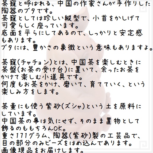 - 茶寵と呼ばれる、中国の作家さんが手作りした陶器のブタです。