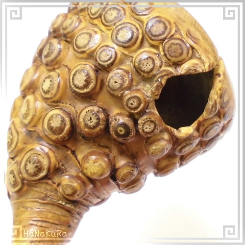 表面のある丸い模様は、竹の根の組織(繊維)の一部で、元々ある天然の物です。