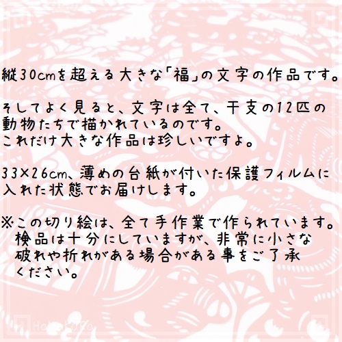 切り絵 剪紙 L101 工芸品 福字十二支 33×26cm